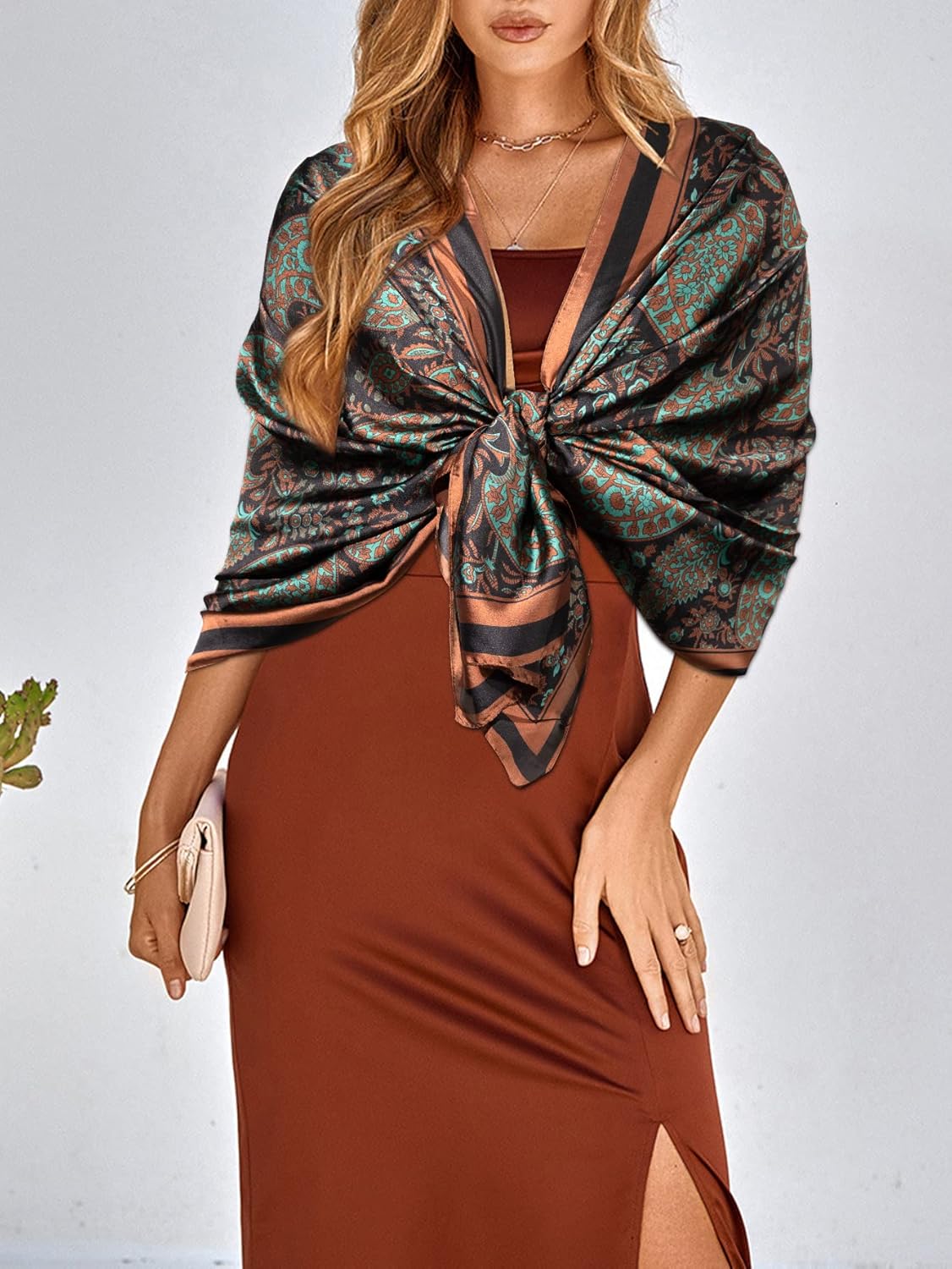 Bestshe Silk Feeling Long Scarf Fashion Floral Large Scarf Satin Shawl Wraps for Women with Gift Packed