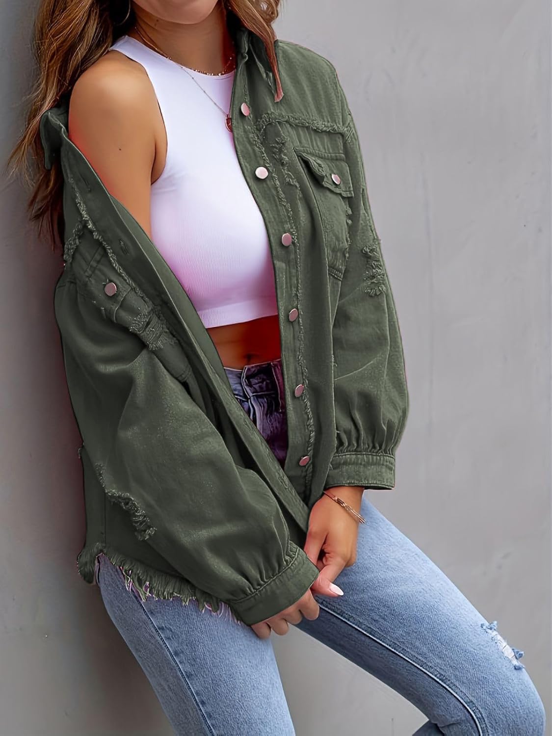 DMOYALA Womens Ripped Denim Shirt Jacket Shacket Jacket