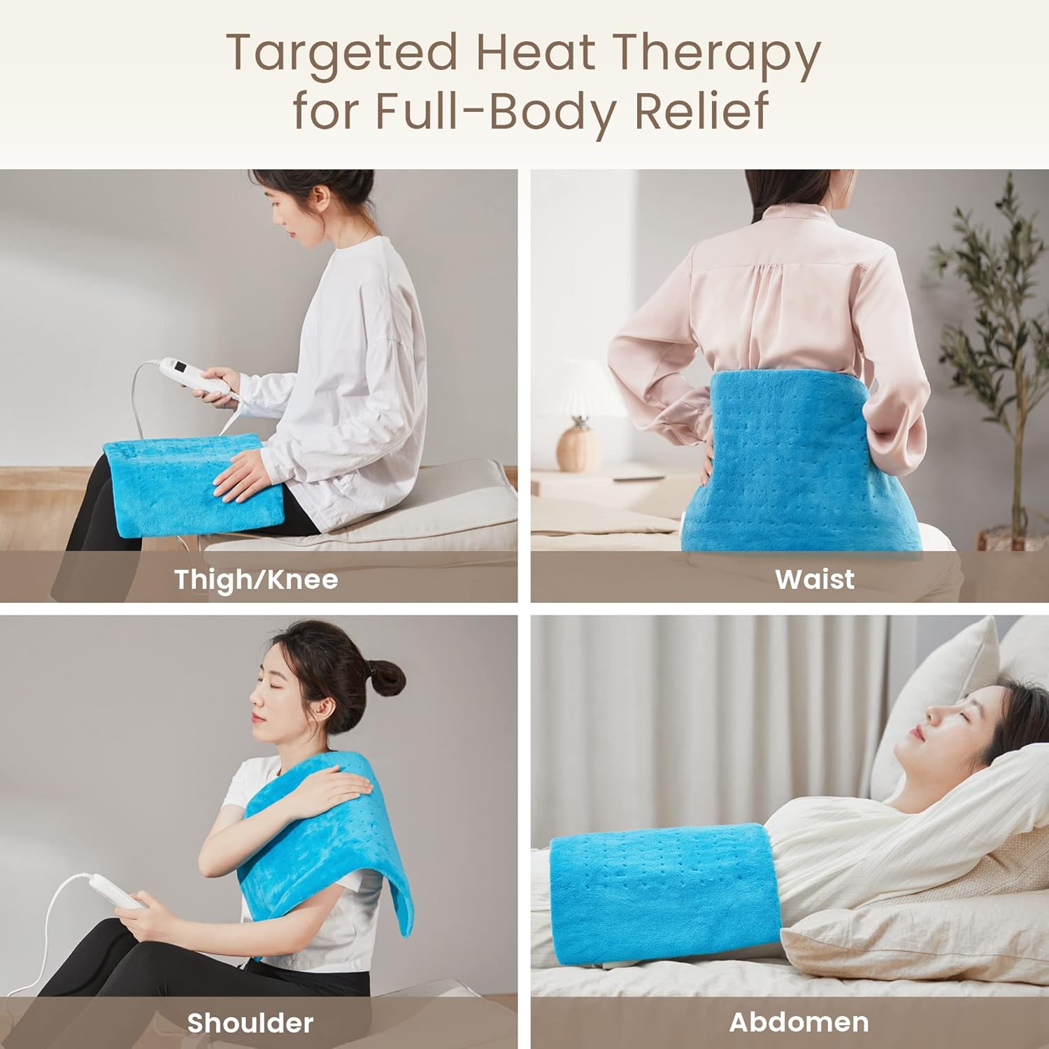 EFFECTIVE PAIN RELIEF: Therapeutic 12 x 24 inch heating pad delivers a stream of heat to provide targeted heat therapy for back pain, menstrual cramps, and sore muscles. Heat relieves pain and help ease muscle tension for the back, shoulders, abdomen, legs, and provides pleasant muscle relaxation and other large muscle groups