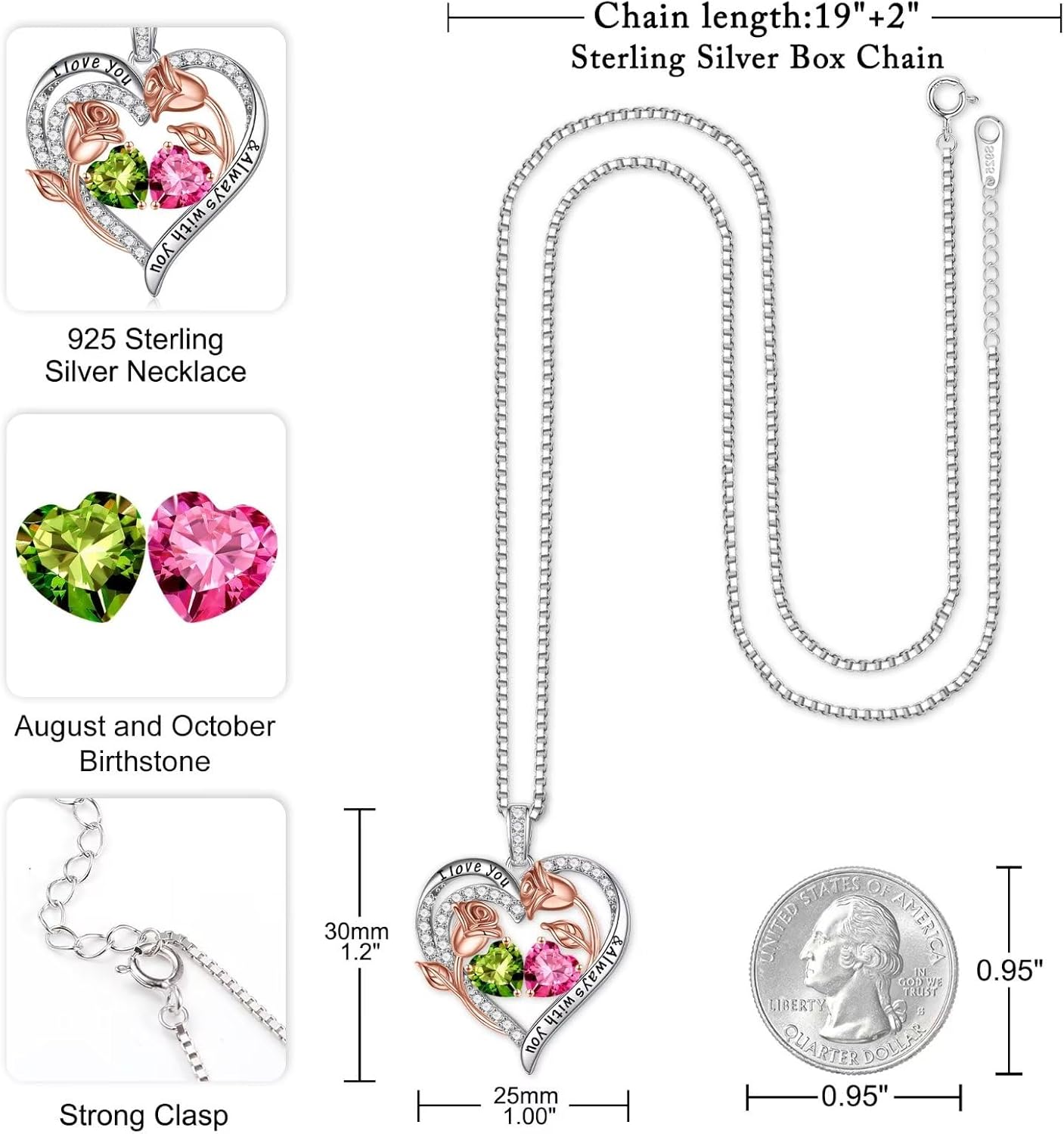 Iefil 925 Sterling Silver Rose Heart Birthstone Necklace: A Timeless Valentine’s Day Gift
