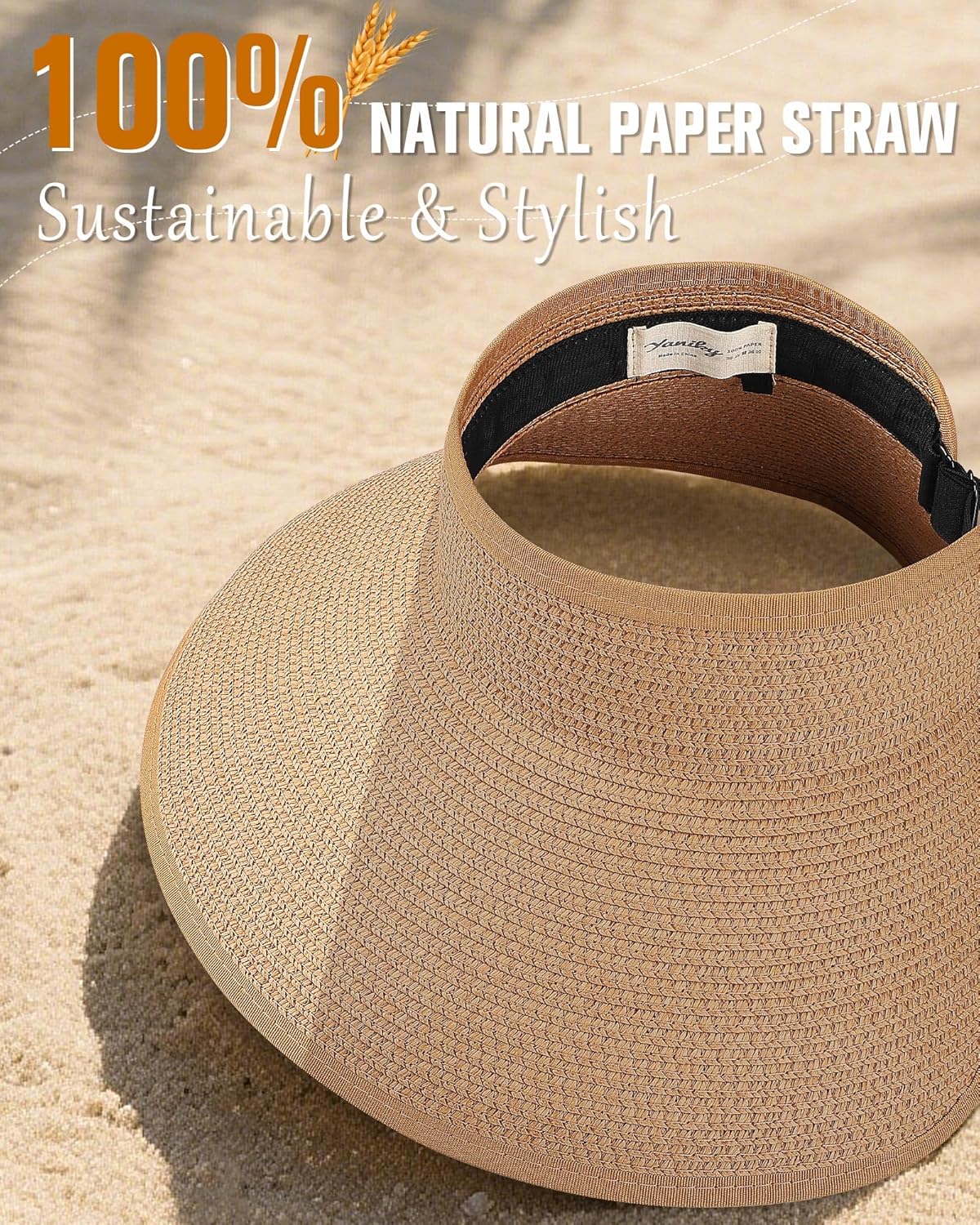 YANIKY Damen Sonnenhut Sun Visor für Damen breite Krempe UV-Schutz Strandhut Faltbar Sommerhut UPF 50+ Strohhut mit Breite Krempe .Das Design ist wirklich schön und praktisch wie auch die Farbe und es macht einen guten Eindruck.Er ist sehr leicht, lässt sich einfach zusammenrollen.Der Hut besteht aus leichtem Papierstroh.schützt Gesicht vor Sonnenstrahlen .